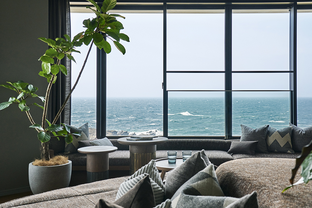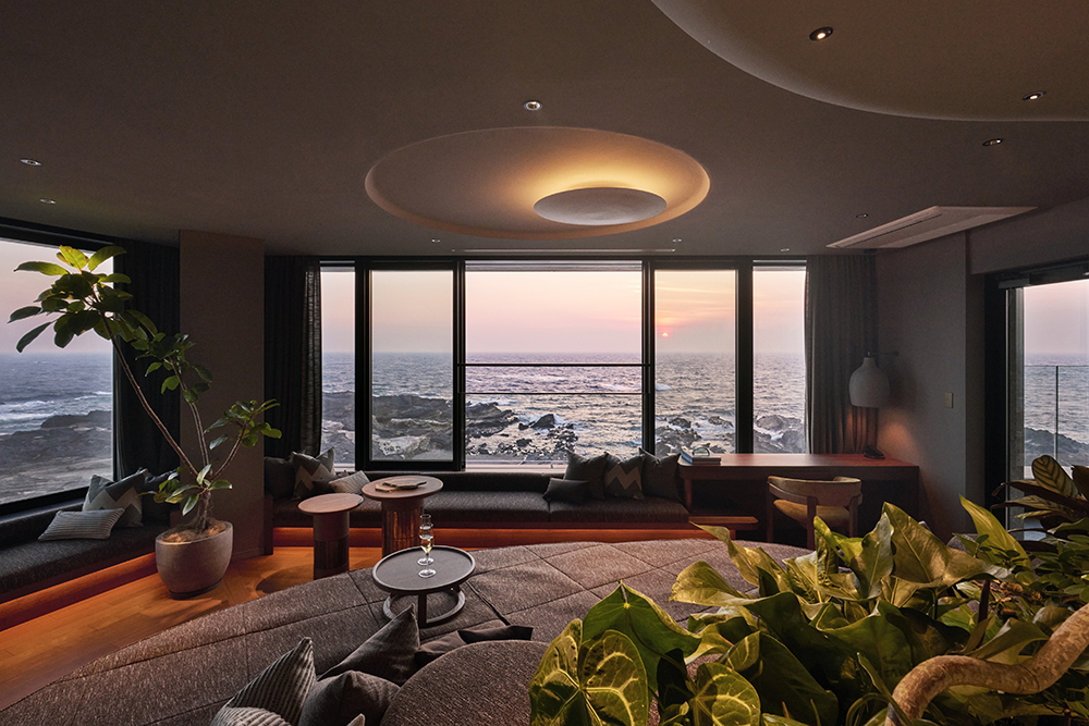 神奈川県三浦半島の最南端、広大な海原の静穏な地に、「ふふ」では初めての海を望むリゾートが誕生します。客室からは、海と空がゆるやかに溶け合う水平線が目の前に広がり、隆起した岩を打つ力強い波や、太陽の光を受ける水面が織りなす雄大な自然の息吹を間近に感じられます。館内は、波によって削られたかのような柔らかな壁面やインテリア、城ヶ島の自然に馴染む落ち着いたトーンのファブリックなど海のリゾートを体現した空間をご用意しております。また、全ての客室に海を望む天然温泉を完備しており、やさしい潮風の香りに包まれながら、疲れをほどく湯浴みをお愉しみいただけます。