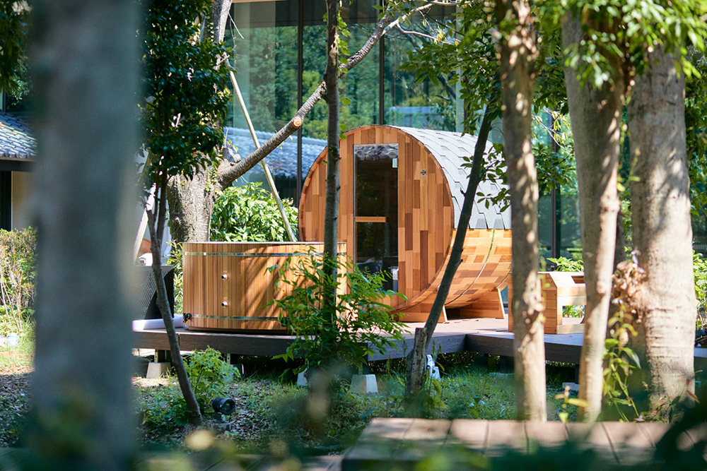 ロウリュ式のプライベートサウナと、水風呂を完備しております。木々に囲まれた空間で深いやすらぎを感じ、心身ともにととのう時間をお過ごしください。