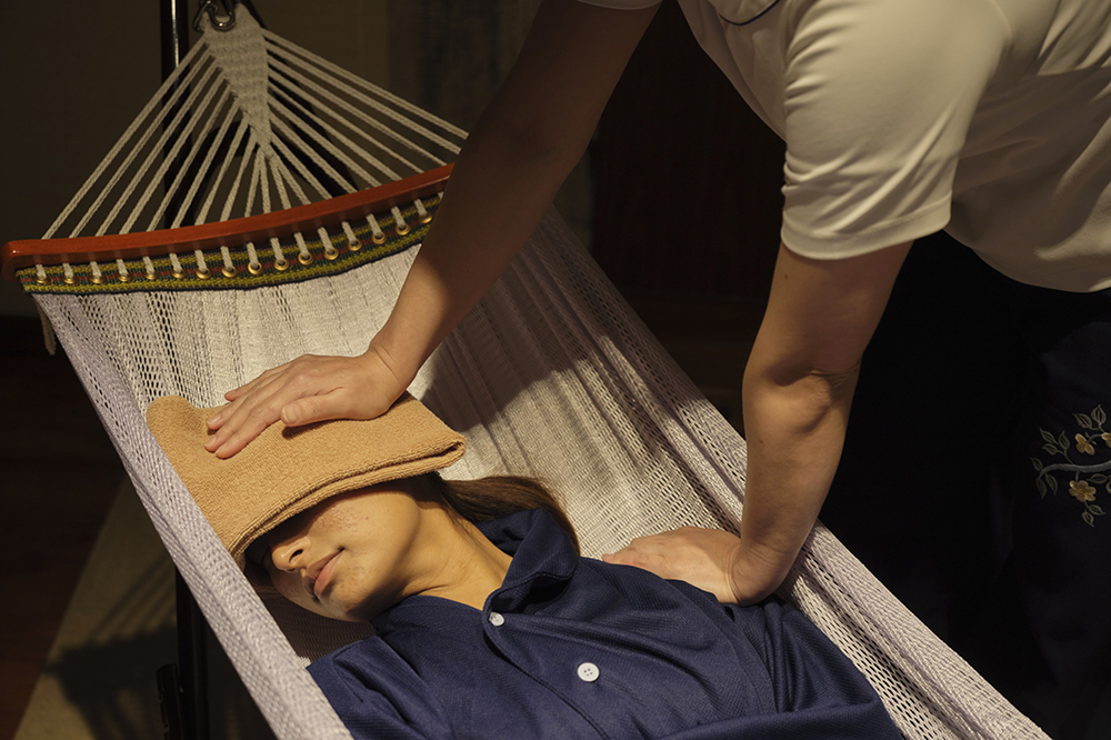 地下1階には、40度前後で身体をやさしく温める「温暖浴」を新設しました。また、タイ古式マッサージ「タイタイ」も地下フロアへ移設し、ハンモックの上で施術を受けられる新サービス「ハンモックタイ」 を導入。よりゆったりと心身をほぐせる、くつろぎの空間へと生まれ変わりました。