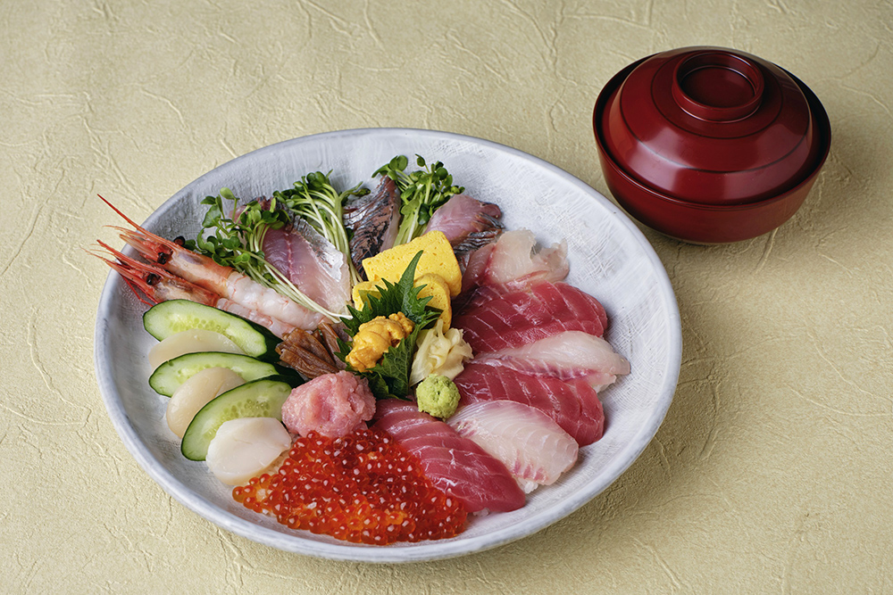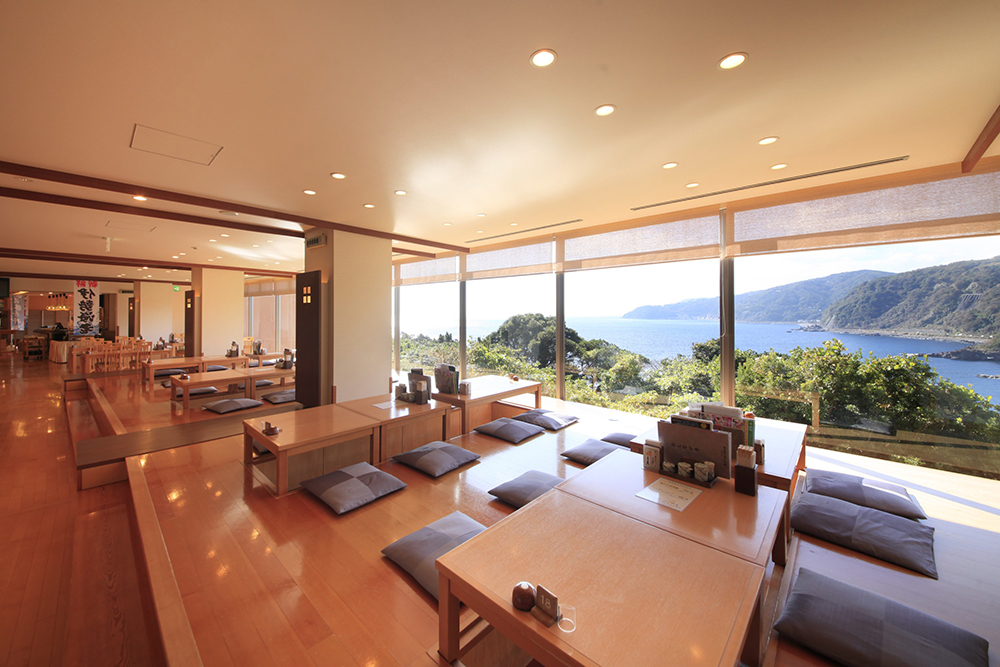 「赤沢日帰り温泉館」内のレストラン「湯羅(ゆら)」では、海が広がるロケーションを眺めながら、赤沢の海鮮や地元食材を中心に、丼ものや麺類、一品料理など多彩なお料理をお楽しみいただけます。素材がもつ魅力を引き出すために、料理人が一品一品にこだわりを込めたお料理をご堪能ください。