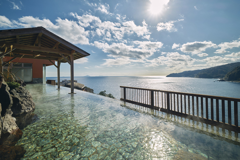 空と海、湯舟の一体感を満喫できる眺望抜群の大露天風呂