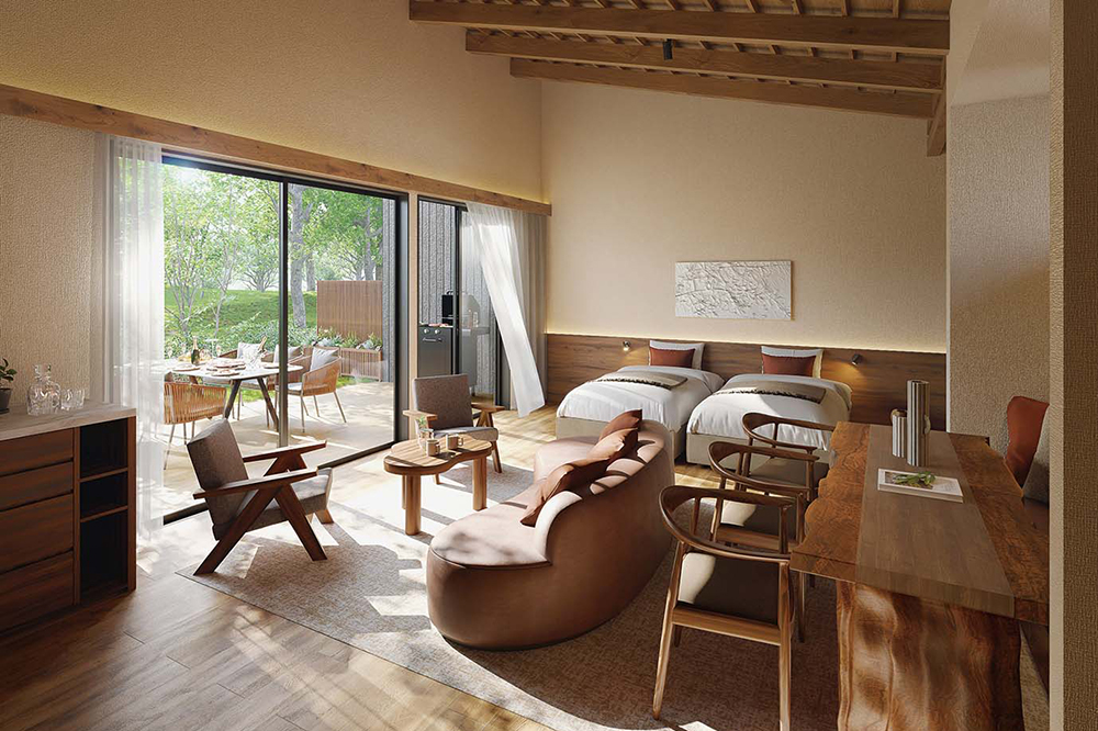 京阪神から約1時間で行ける「遊ぶ・泊まる・癒す・食べる」を楽しむ、レジャー&スパリゾート「ASOBIYUKU 京都るり渓温泉」内に、プライベート温泉付きの一棟貸切VILLA が誕生します。